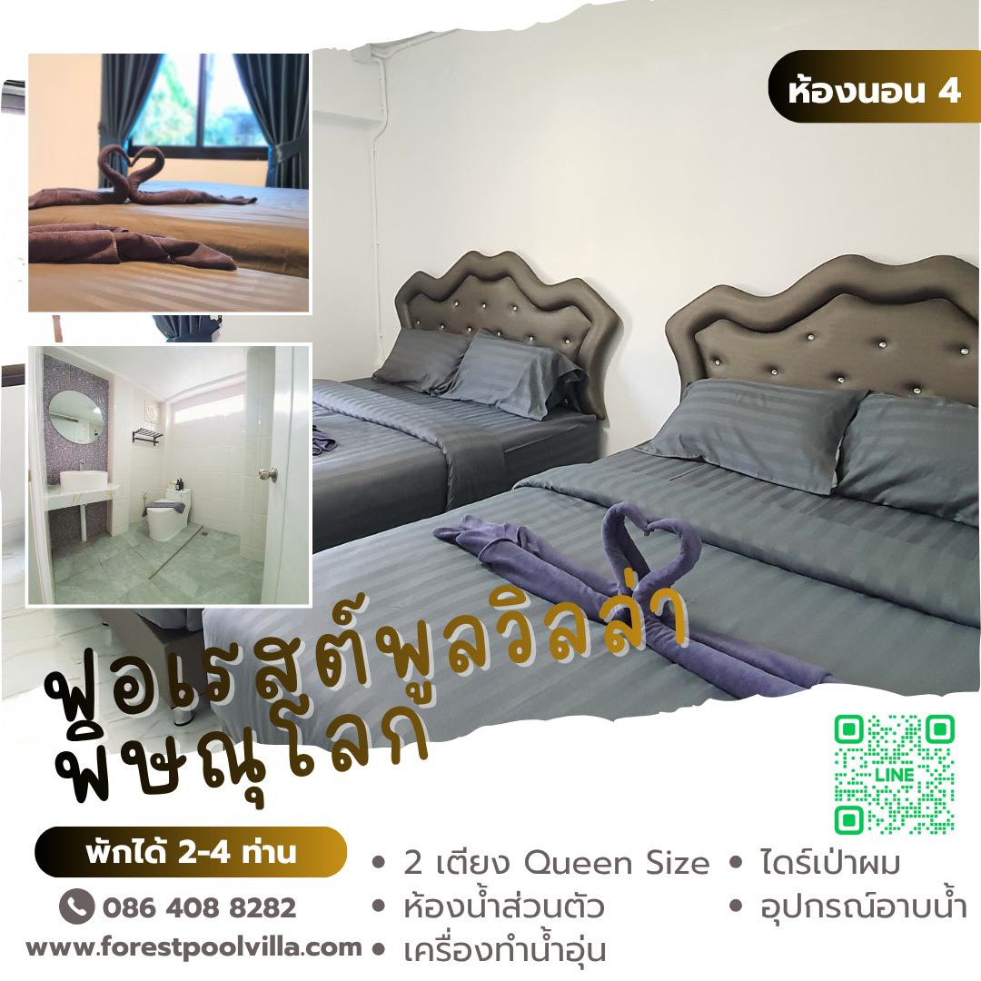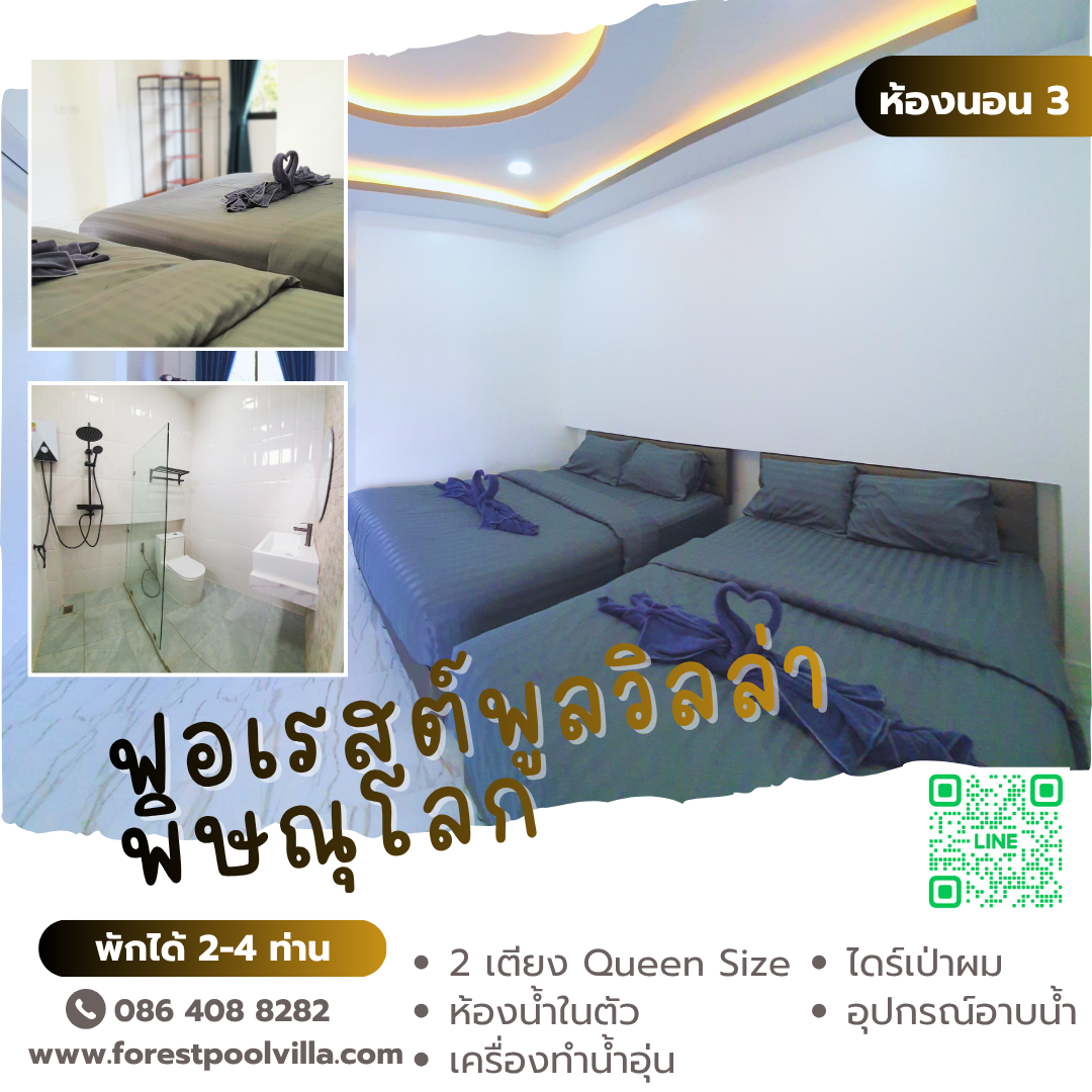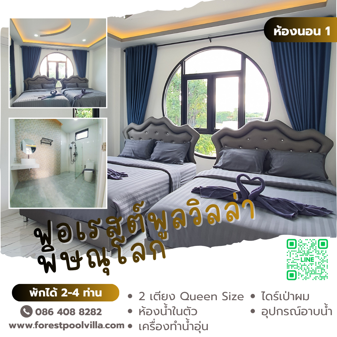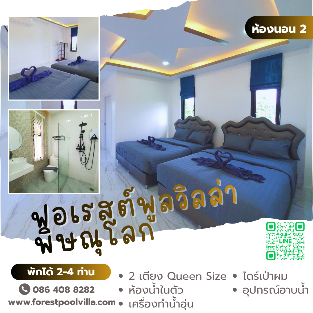 บ้านพักฟอเรสต์พูลวิลล่าเป็นที่พักพิษณุโลกที่เหมาะสำหรับครอบครัวและกลุ่มเพื่อนที่มองหาสถานที่ในการผ่อนคลายและสร้างความทรงจำดีๆ ในบรรยากาศที่เงียบสงบ ใกล้ชิดธรรมชาติ และยังเพียบพร้อมไปด้วยสิ่งอำนวยความสะดวกครบครัน
